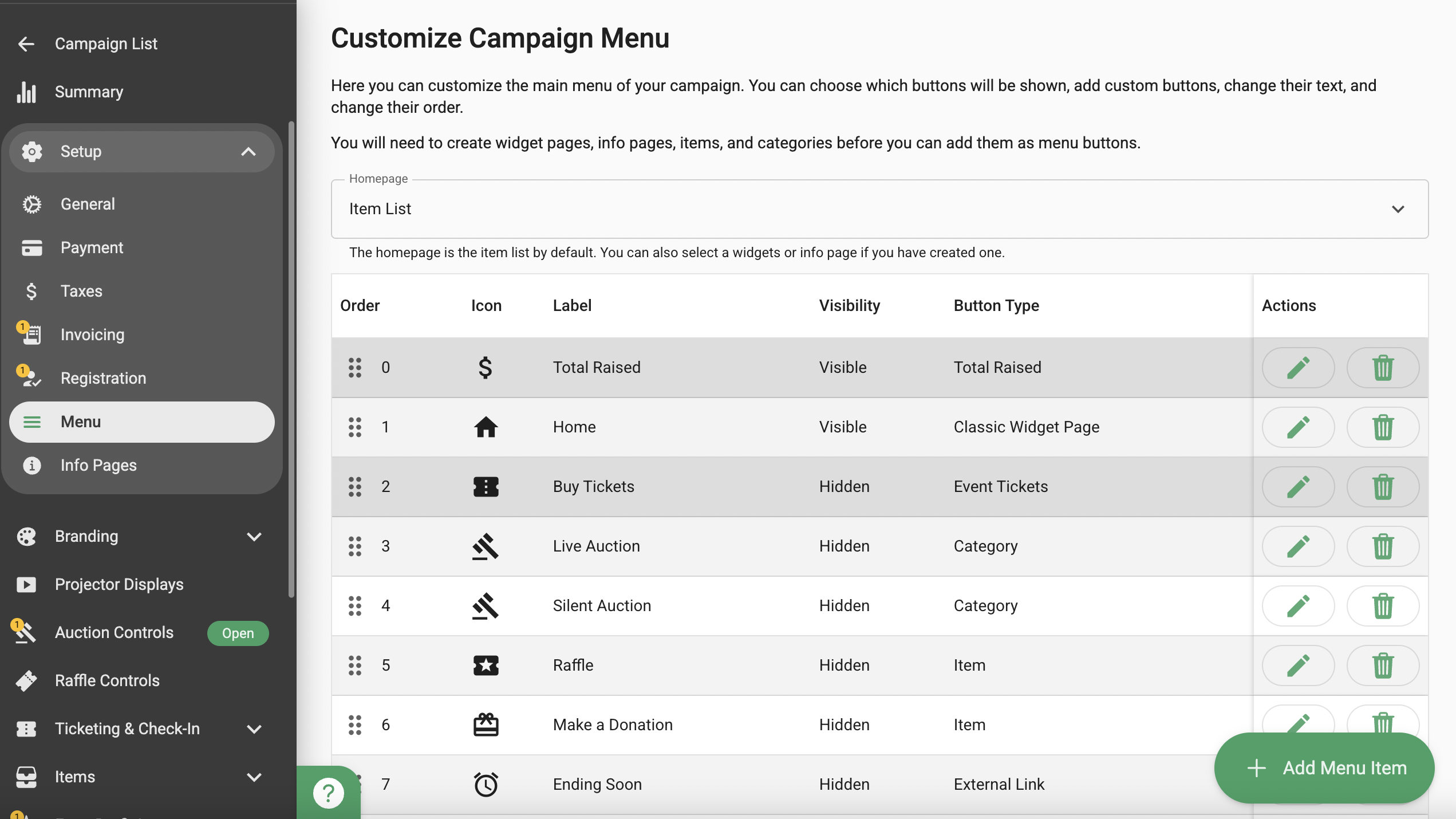 Now your Info Page is complete you need to add it to your campaign, to do this go to Setup > Menu.