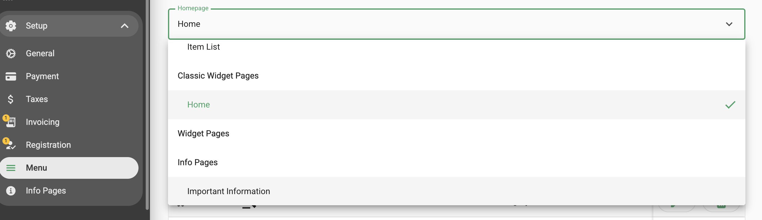 Click the box at the top of the page that says 'Hompage' if you haven't already changed this it will say 'Item List'