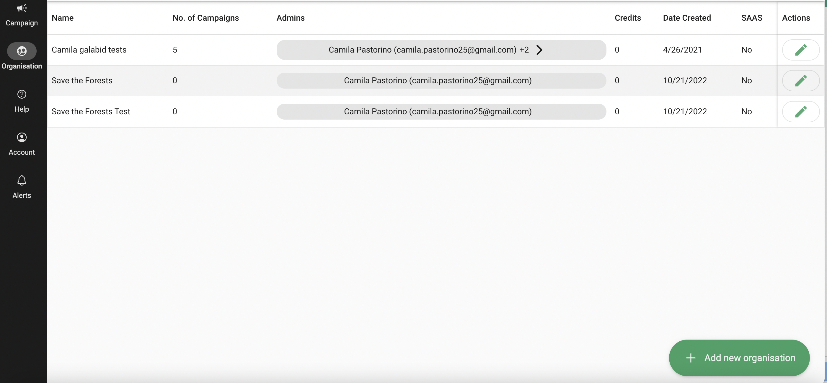 Finally if you would like to create a new organization you can do this by clicking '+ ADD NEW ORGANIZATION'