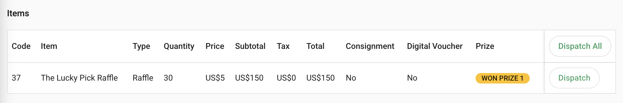 Live Auction items are used for display purposes and the labelling can be edited to make these items suitable for raffle prize display. This is an alternative to the standard, most commonly used raffle set up.