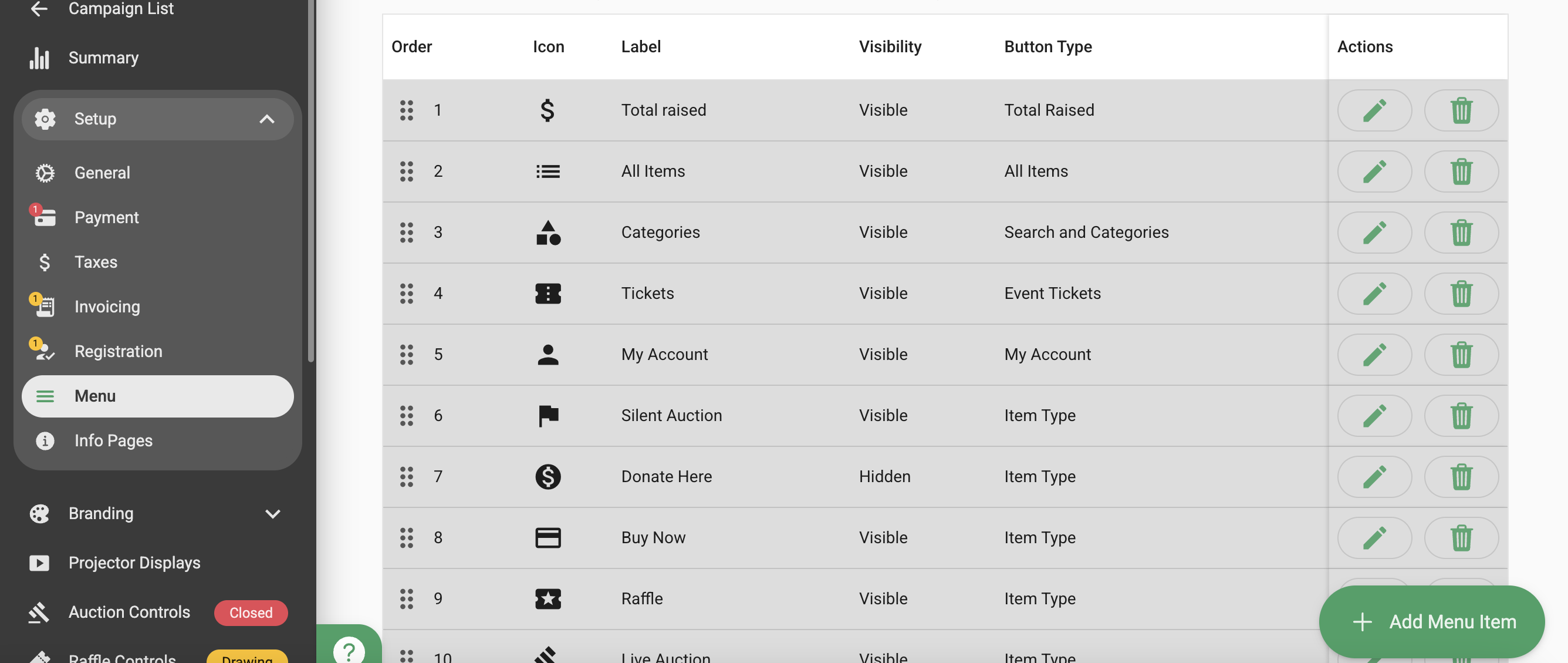 1) Go to your dashboard and click 'Setup' > 'Menu' > 'Add Menu option'.
